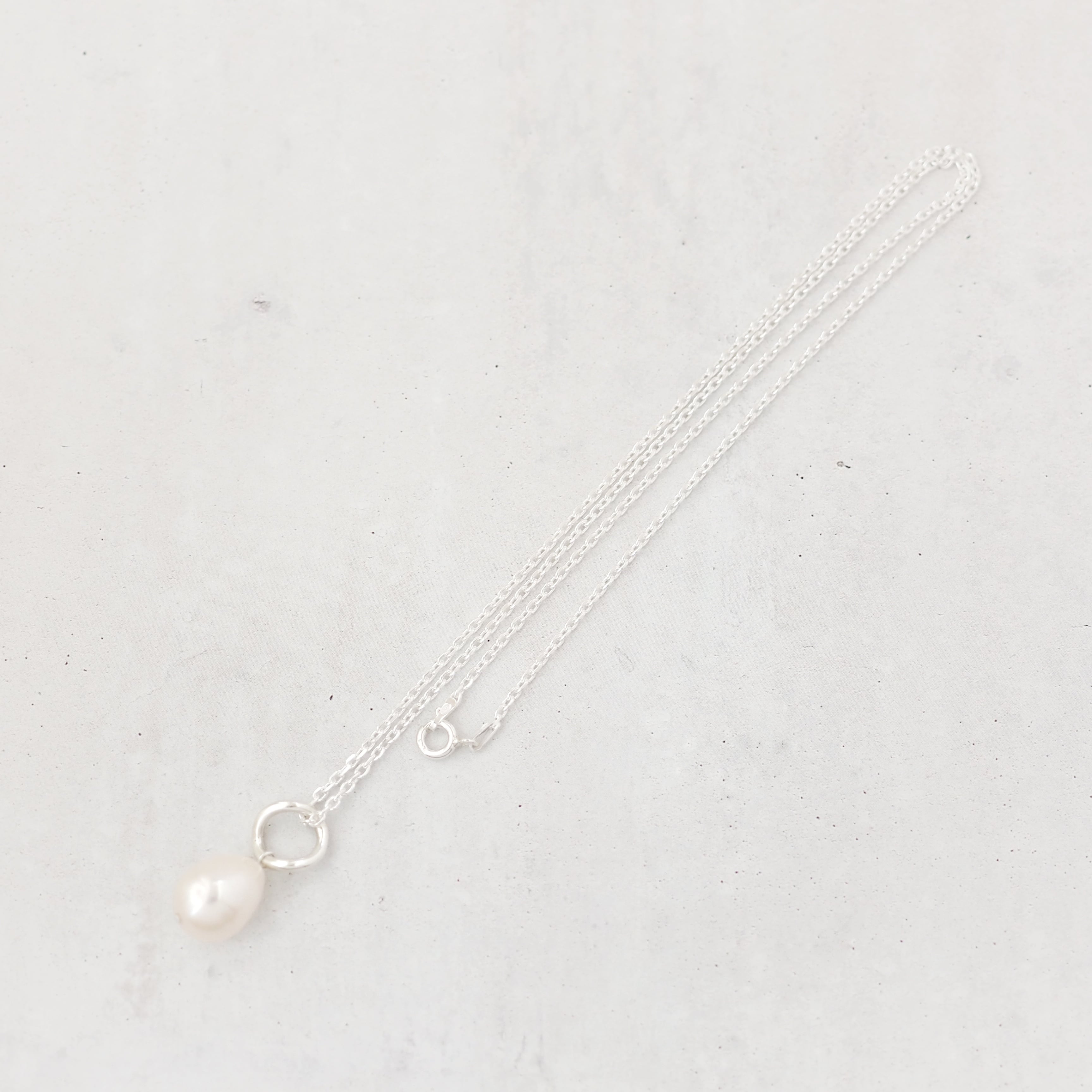 ツイストしたシルバー925とドロップ型のパールを合わせたネックレス。