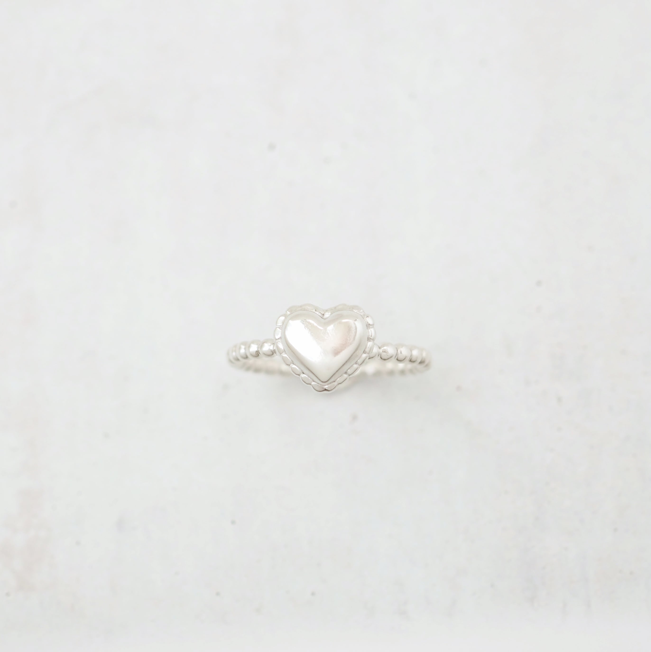 小さなハートに華奢なボールリングを合わせた大人可愛いリングです。